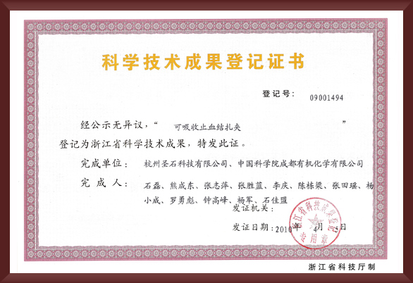杭州圣石科技股份有限公司位于杭州錢塘區(qū)杭州醫(yī)藥港,是浙江省首家致力于可吸收醫(yī)用耗材與醫(yī)用生物可降解合成材料創(chuàng)新醫(yī)療器械研制和產(chǎn)業(yè)化的國家級(jí)高新技術(shù)企業(yè)。系國家科技部科技支撐計(jì)劃項(xiàng)目、浙江省重點(diǎn)研發(fā)計(jì)劃項(xiàng)目、浙江省重點(diǎn)技術(shù)創(chuàng)新專項(xiàng)計(jì)劃項(xiàng)目承擔(dān)單位,浙江省腹腔臟器微創(chuàng)診治臨床醫(yī)學(xué)研究中心成員企業(yè),浙江省重癥肝膽疾病(微創(chuàng))診治技術(shù)研究中心成員單位,中國醫(yī)學(xué)裝備協(xié)會(huì)理事會(huì)理事單位,中國醫(yī)學(xué)裝備協(xié)會(huì)轉(zhuǎn)化醫(yī)學(xué)分會(huì)副會(huì)長單位。2016年入選浙江省經(jīng)信委行業(yè)“隱形冠軍”培育企業(yè),2018年入選及獲評(píng)杭州市戰(zhàn)略性新興產(chǎn)業(yè)企業(yè)及杭州市企業(yè)高新技術(shù)研發(fā)中心,2019年獲評(píng)杭州市企業(yè)技術(shù)中心,企業(yè)商標(biāo)圣石®已被評(píng)為杭州市著名商標(biāo)。2020年獲評(píng)杭州錢塘新區(qū)具跨越式發(fā)展特質(zhì)的“雨燕企業(yè)”稱號(hào),并在政府引導(dǎo)的“畝均論英雄、創(chuàng)新論英雄”為發(fā)展理念的企業(yè)評(píng)優(yōu)活動(dòng)中,獲評(píng)錢塘新區(qū)A級(jí)規(guī)上工業(yè)企業(yè)。2021年獲評(píng)浙江省科技廳創(chuàng)新醫(yī)械省高新技術(shù)企業(yè)研究開發(fā)中心。企業(yè)聯(lián)合中科院共同研制的國內(nèi)首創(chuàng)微創(chuàng)外科手術(shù)必備耗材速豐®“可吸收止血結(jié)扎夾”,該產(chǎn)品已獲國家發(fā)明專利授權(quán),并榮獲“浙江制造精品”稱號(hào),2020年入選杭州市第一批優(yōu)質(zhì)產(chǎn)品目錄。產(chǎn)品自2012上市以來,已陸續(xù)進(jìn)入國內(nèi)上千家大型綜合性醫(yī)院,累計(jì)上百萬病患手術(shù)獲益。在其適用范圍內(nèi)已能完全替代金屬及塑料等非吸收同類產(chǎn)品,達(dá)到術(shù)后按時(shí)降解,體內(nèi)無存效果。產(chǎn)品性能已達(dá)到或超越進(jìn)口同類產(chǎn)品水平,填補(bǔ)了國內(nèi)產(chǎn)品空白,產(chǎn)品以其卓越品質(zhì)在臨床使用中的安全性與有效性,得到了廣大臨床醫(yī)護(hù)人員的一致肯定,實(shí)現(xiàn)了國產(chǎn)替代進(jìn)口的國戰(zhàn)略目標(biāo)。