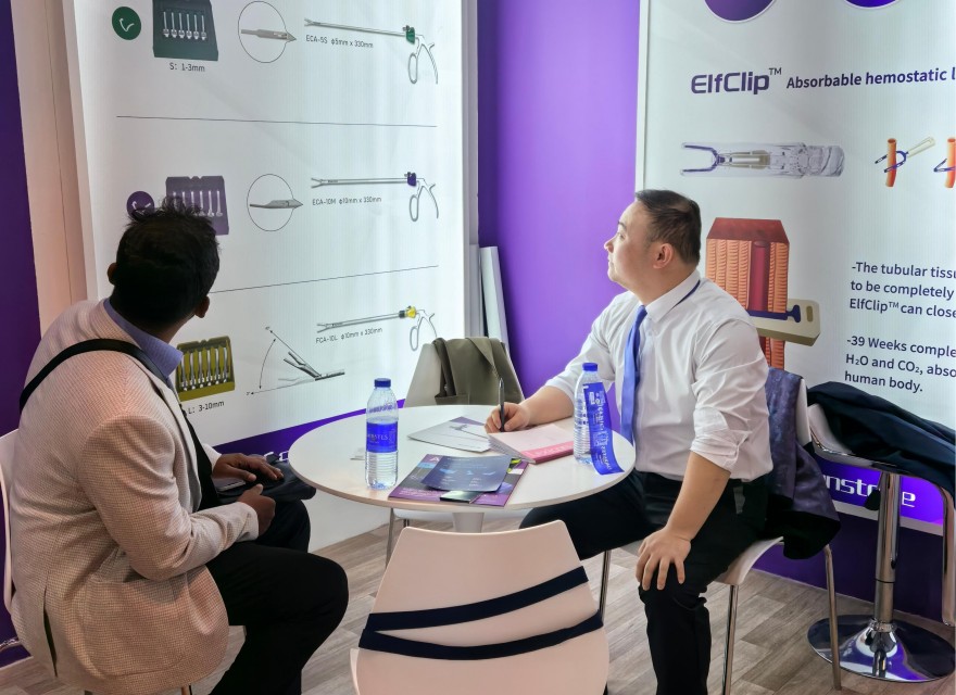圣石科技此次展出的數(shù)款微創(chuàng)手術(shù)創(chuàng)新醫(yī)療器械產(chǎn)品,憑借其全新的產(chǎn)品設(shè)計理念,領(lǐng)先的精密工藝技術(shù)和卓越的性能,吸引了來自全球的目光。展位前人潮涌動,來自中東、歐洲、亞洲及非洲等地區(qū)的客戶和友商紛紛駐足,深入了解產(chǎn)品細(xì)節(jié)并洽談合作。