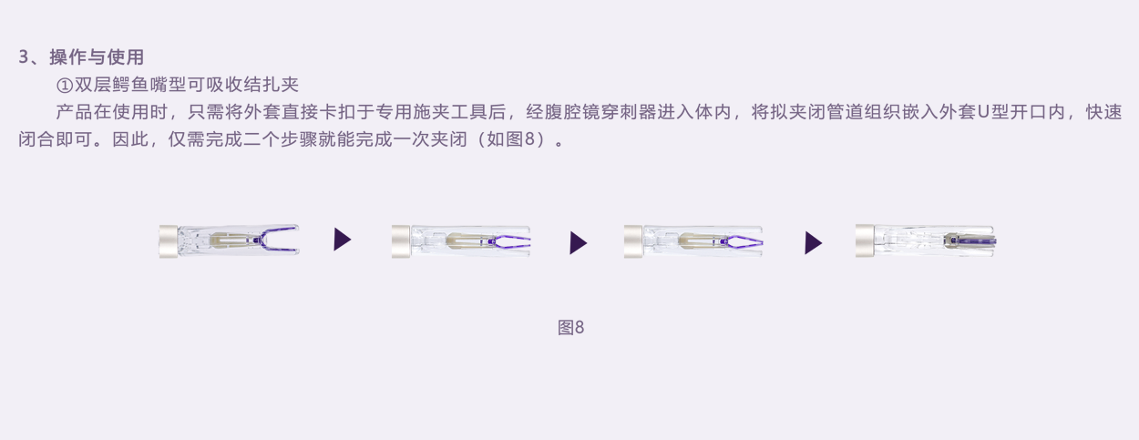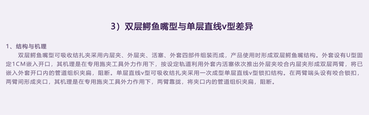內(nèi)外層夾為雙色設(shè)計(jì),涇渭分明。實(shí)際使用中內(nèi)外層夾配合夾閉管腔效果一目了然,避免錯(cuò)誤判斷。
